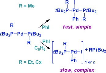 2. Oxidative addition to palladium(0) diphosphine complexes: observations of mechanistic complexity with iodobenzene as reactant.