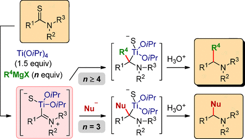 28. Reductive alkylation of thioannides with Grignard reagents in the presence of Ti(OiPr)4: insight and extension.