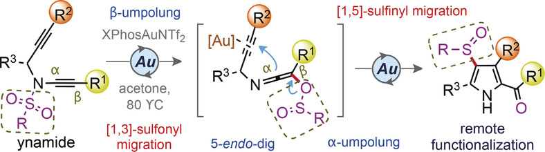 | 5. Umpolung reactivity of ynamides: an unconventional [1,3]-sulfonyl and [1,5]-sulfinyl migration cascade. Prabagar, B.; Mallick, R. K.; Prasad, R.; Gandon, V.; Sahoo, A. K. Angew. Chem. Int. Ed. 2019, 58 (8), 2365-2370. http://dx.doi.org/10.1002/anie.201813143 |