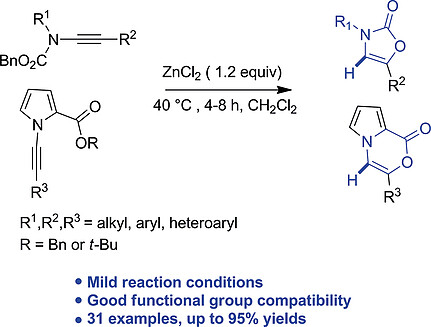 22. Zinc chloride mediated synthesis of 3H-oxazol-2-one and pyrrolo-oxazin-1-one from ynamide. Habert, L.; Sallio, R.; Durandetti, M.; Gosmini, C.; Gillaizeau, I. Eur. J. Org. Chem. 2019, 2019 (31-32), 5175-5179. https://doi.org/10.1002/ejoc.201900428 |