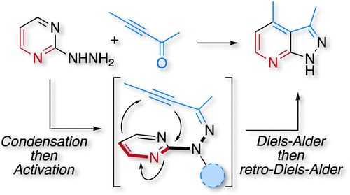 28. Activating pyrimidines by pre-distortion for the general synthesis of 7-aza-indazoles from 2-hydrazonylpyrimidines via intramolecular Diels-Alder reactions. Le Fouler, V.; Chen, Y.; Gandon, V.; Bizet, V.; Salome, C.; Fessard, T.; Liu, F.; Houk, K. N.; Blanchard, N. J. Am. Chem. Soc. 2019, 141 (40), 15901-15909. https://doi.org/10.1021/jacs.9b07037 |