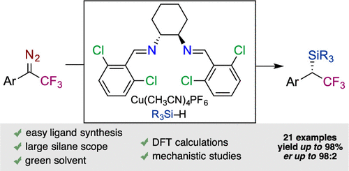 30. Asymmetric CuI-catalyzed insertion reaction of 1-aryl-2,2,2-trifluoro-1-diazoethanes into Si–H bonds. Carreras, V.; Besnard, C.; Gandon, V.; Ollevier, T. Org. Lett. 2019, 21 (20), 9094-9098. https://doi.org/10.1021/acs.orglett.9b03480 |