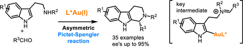 | 32. Enantioselective gold-catalyzed Pictet–Spengler reaction. Glinsky-Olivier, N.; Yang, S.; Retailleau, P.; Gandon, V.; Guinchard, X. Org. Lett. 2019, 21 (23), 9446-9451. https://doi.org/10.1021/acs.orglett.9b03656 |