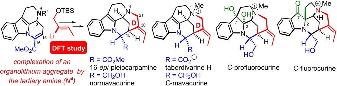 | 15. Collective total synthesis of mavacuran alkaloids through intermolecular 1,4-addition of an organolithium reagent. Mauger, A.; Jarret, M.; Tap, A.; Perrin, R.; Guillot, R.; Kouklovsky, C.; Gandon, V.; Vincent, G. Angew. Chem. Int. Ed. 2023, 62 (21), e202302461. https://doi.org/10.1002/anie.202302461 |