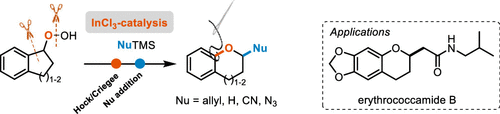 | 20. Tandem InCl3-promoted hydroperoxide rearrangements and nucleophilic additions: a straightforward entry to benzoxacycles. Bosnidou, A. E.; Fayet, A.; Cheibas, C.; Gayraud, O.; Bourcier, S.; Frison, G.; Nay, B. J. Org. Chem. 2023, 88 (13), 9277-9282. https://doi.org/10.1021/acs.joc.3c00845 |