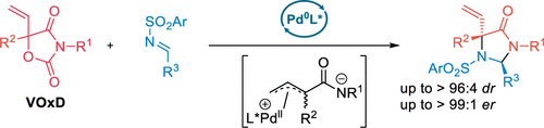 | 27. Diastereo- and enantioselective palladium-catalyzed cycloadditions of 5-vinyloxazolidine-2,4-diones with electrophilic imines. Roblin, A.; Casaretto, N.; Archambeau, A. Org. Lett. 2023, 25 (35), 6453-6458. https://doi.org/10.1021/acs.orglett.3c01883 |