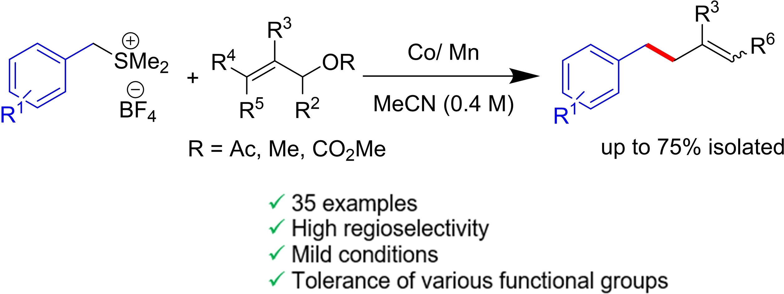 31. Co-catalyzed reductive cross-couplings of Csp3-S with Callyl-O electrophiles to form Csp3-Csp3 Bonds. Gao, M.; Gosmini, C. Adv. Synth. Catal. 2023, 365 (21), 3597-3602. https://doi.org/10.1002/adsc.202300876 |